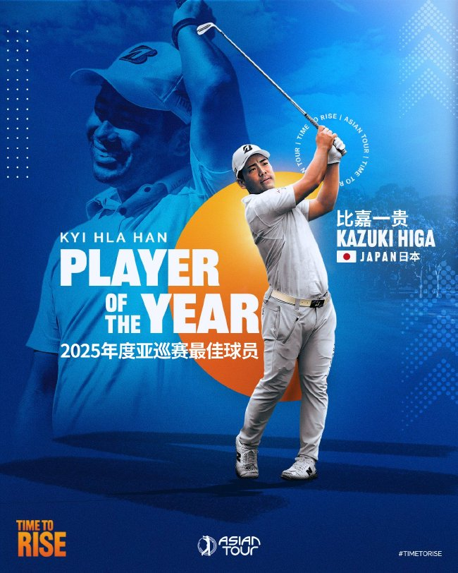 比嘉一贵在2025赛季夺得亚巡赛的两连冠,况且成为首位来自日本的亚巡赛奖金王,这一配置也得到了亚巡赛会员们的粗拙认同。在亚巡赛会员投票的奖项中,比嘉一贵票选为2025亚巡赛最好球员。